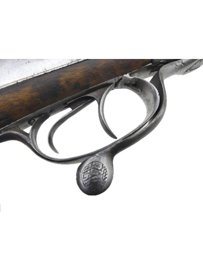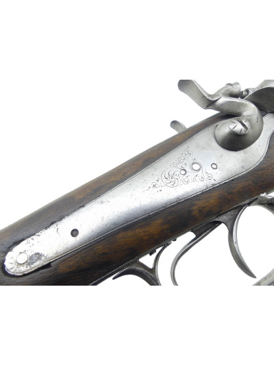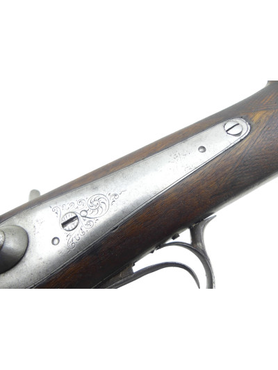 Platines arrière et bascule polies avec petit décor à motif de rinceaux encore visible.