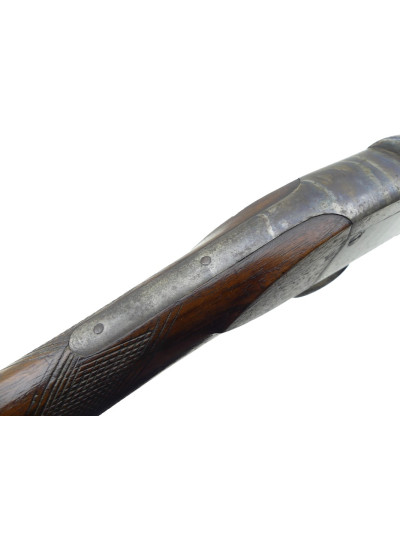 Bonne crosse à l’anglaise dans une jolie patine, poignée quadrillée.
