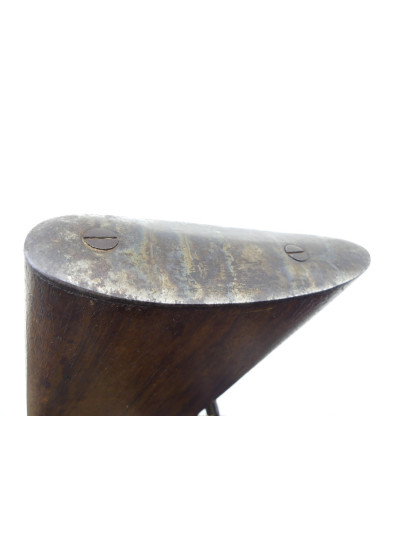 Il est dans une patine brune avec oxydation de surface, bouton de manœuvre circulaire quadrillé.