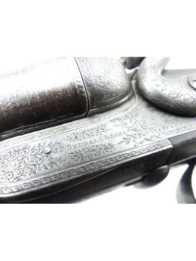 Platines avant avec fin décor de volutes florales sur les corps et les chiens. Elles sont marquées du fabricant J.D. Dougall & Sons.