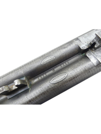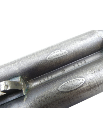Le dessous du canon de gauche porte la mention Choké Non pour la balle, celui de droite est marqué Canons de Sûreté garanti Double Epreuve. Le dessous de la bande centrale porte la date 1887.