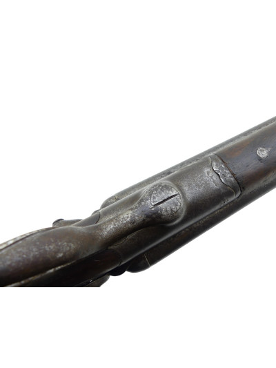 Les canons juxtaposés de 68 cm sont dans une couleur grise avec taches d’oxydation de surface par endroit. Piqûres assez prononcées sur le dessous des premiers tiers.