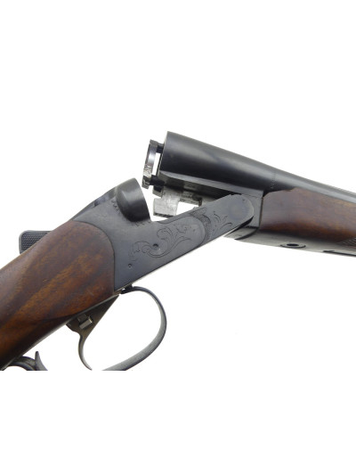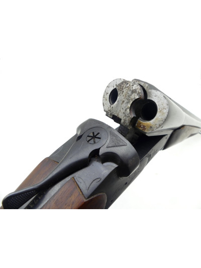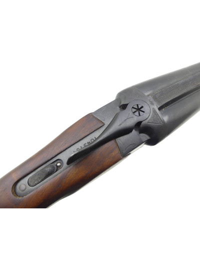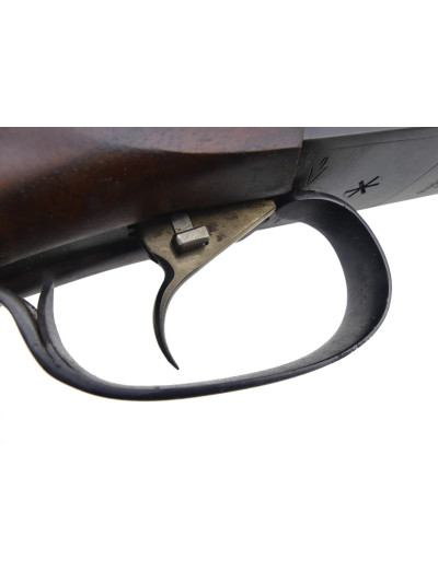 Canons juxtaposés de 66 cm, bande centrale guillochée avec guidon grain d'orge en laiton à l'extrémité.