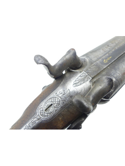 Mécanismes des platines fonctionnels, cran d’armé de celle de gauche un peu usée, le chien tient l’armé mais on peut le débloquer à la main.