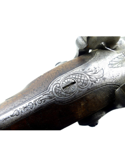 Platines avant à percussion avec décor à motif rocaille, retreint à l’arrière.