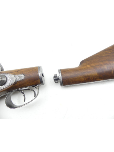 Queue de culasse avec joli décor en suite se prolongeant sur sa dernière partie sur la poignée de la crosse amovible.