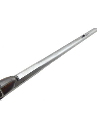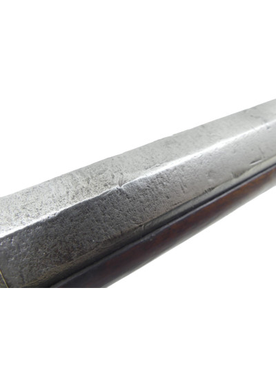 Long canon de 83 cm à pans sur le premier tiers puis rond. Il est poli dans une petite patine grise avec quelques taches d’oxydation par endroit.