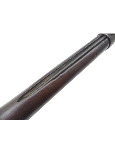 Monture bois raccourcie mi-fût avec extrémité retaillée, dans une jolie patine, deux fendilles près de la contre-platine.