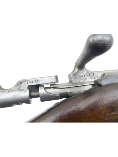 La culasse mobile polie à levier coudé est dans une petite patine grise, les éléments sont au même numéro mais différent de l’arme..