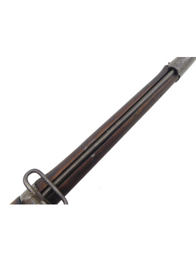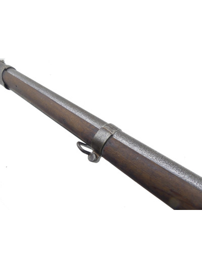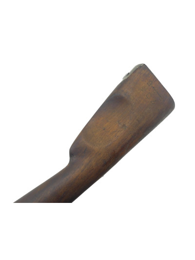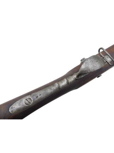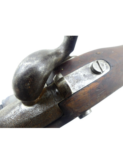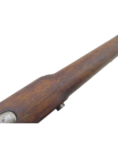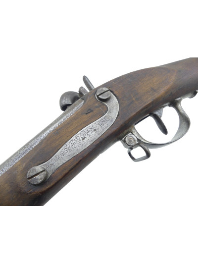Bonne monture en noyer dans une jolie patine, poinçons et deux marquages de St-Etienne, où il a été transformé à percussion et rayé, encore visibles.