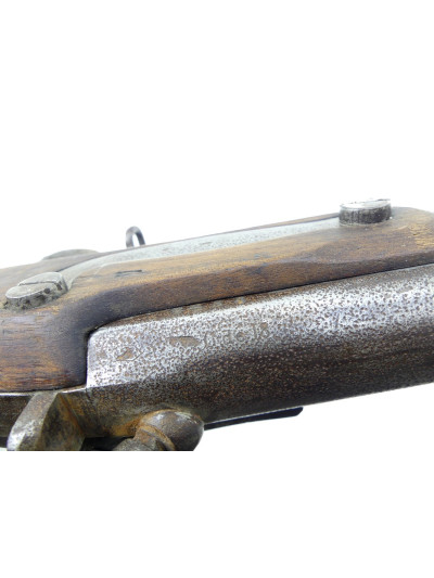 Garnitures fer poinçonnées dans une patine grise, embouchoir avec petites piqûres identiques à celle du canon.