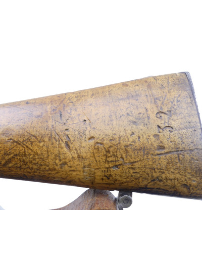 Monture en noyer clair dans une jolie patine, nombreuses traces de manipulation sur le fût et la crosse.