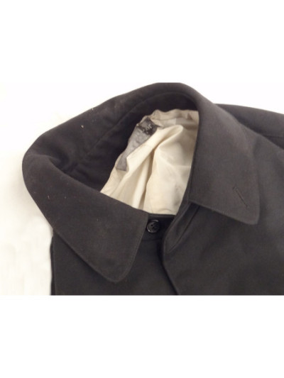En bonne toile noire à longue jupe, avec fermeture sur le devant par une rangée de trois boutons noirs.