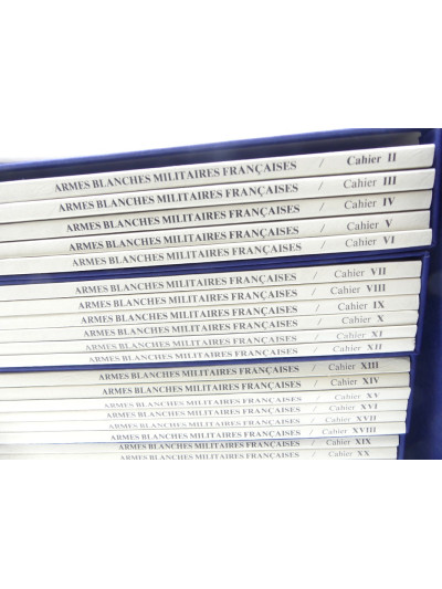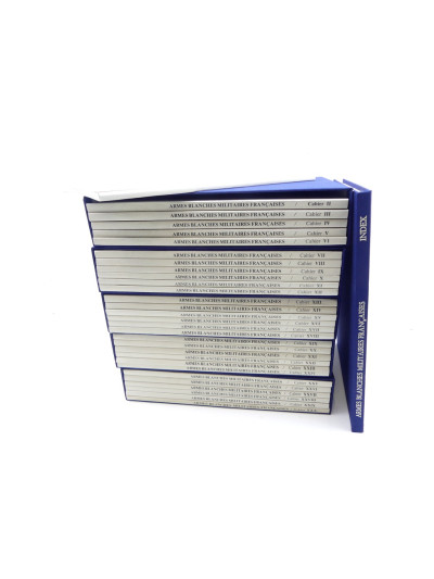 Chaque fascicule en carton gris gaufré contient dix planches individuelles (32x24) avec descriptions et dessins des armes traitées.