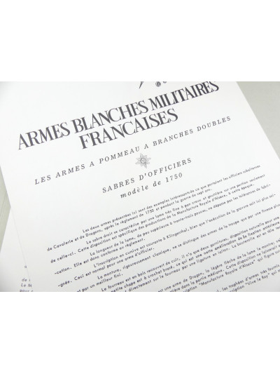 Une somme de renseignements et de connaissances sur les armes blanches portées dans l’armée françaises depuis le XVIIe siècle jusqu’à la période contemporaine.