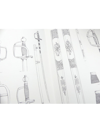 Epées, sabres, glaives, armes d’hast, cuirasses sont décrits avec leurs historiques accompagnés des dessins N&B de Michel Pétard.