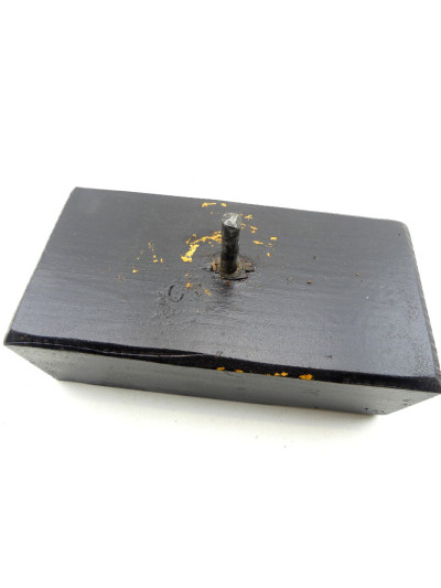 L'ensemble est fixé sur un socle en bois peint en noir, quelques écailles à la peinture par endroit.