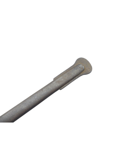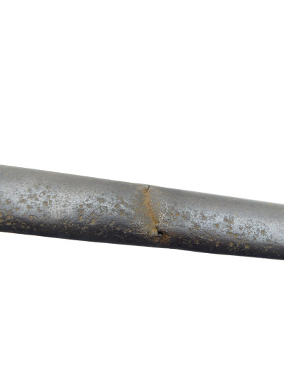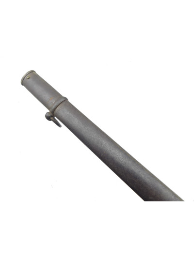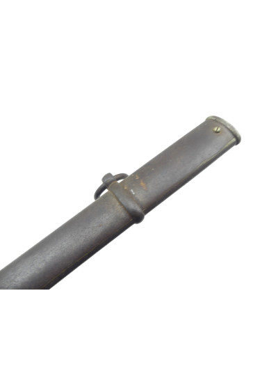 Le fourreau en tôle d'acier est dans une patine grise avec oxydation de surface, un anneau sur bracelet, avec trace de choc à la moitié.